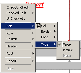 Следующие пункты контекстного меню продублированы в экранной форме редактирования репорта, причем она предоставляет более удобный способ для редактирования.