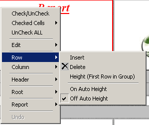 Row/Off Auto Height - при отметке высота строки задана жестко (и все же она может меняться, если в ячейке вы размещаете другую таблицу или репорт). Для жесткого ограничения по высоте РЕКОМЕНДУЕТСЯ задать Edit/Cell/ON Strong Height именно для таких ячеек.