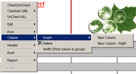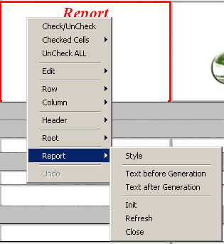 Контекстное меню вызывается кликом неосновной кнопки по форме редактирования отчета (или в форме - по кнопке с изображением меню)