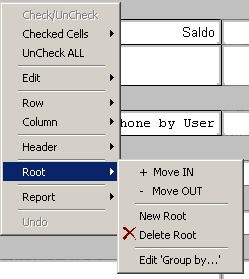 Root/ Move IN (OUT) - перемещение порядка группировки внутрь( ) или вне(-) на 1 уровень.