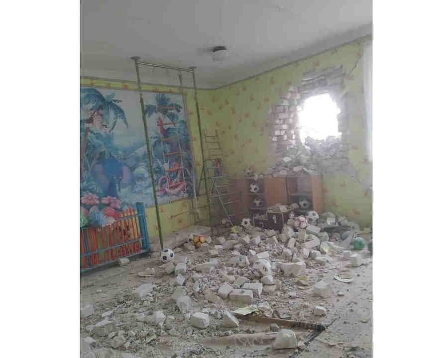 Ладно окна и стекла, а осветительный плафон как остался цел (он тоже из стекла), а он на линии попадания снаряда в стену прямо в метре от дыры.