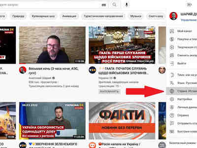 Заходите в профиль в Youtube, нажимаете на аватар, и выбираете ДРУГУЮ страну.