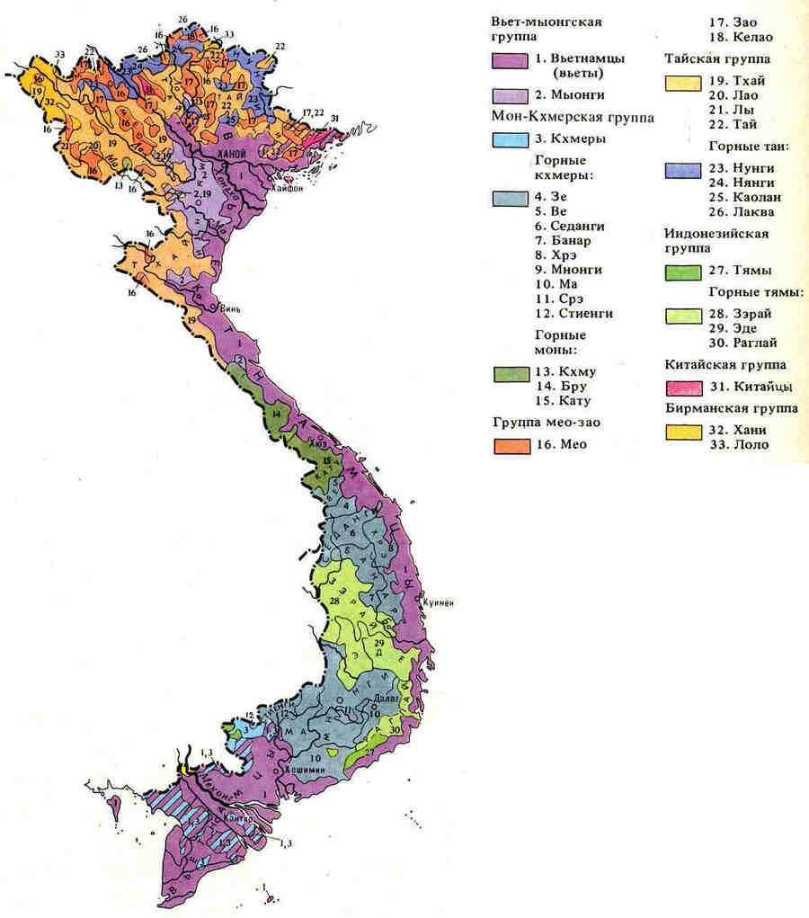 В Южном Вьетнаме наиболее распространенная этническая группа - это, конечно же, вьетнамцы, но в регионе также живут Чамы - народность, которая исторически связана с Малайзией и Индонезией, и Кинь (кхмеры), народность, связанная с Камбоджей.