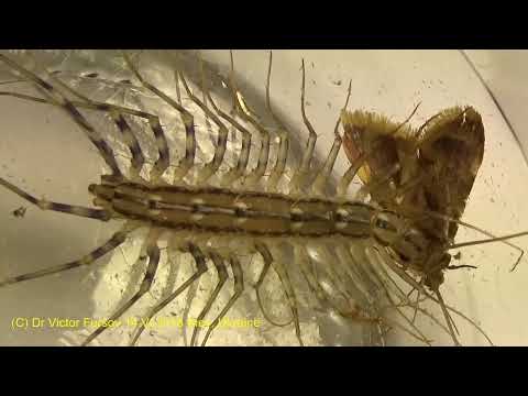 Для ее удержания используются мощные челюстные отростки. Впрыснутый яд мгновенно парализует насекомое. После еды мухоловка прячется в укромное место для переваривания пищи. Столкнувшись мухоловкой, люди часто задаются вопросом – ядовита ли сороконожка. Да, у насекомого есть железы, вырабатывающие яд для убийства добычи. Если в пределах досягаемости сороконожки оказывается несколько жертв, то она ловит их всех. При этом в процессе поедания одной мошки, остальных она удерживает ногами.Поведение и размножение: Мухоловка активна и днём, и ночью, будучи потревоженной, в отличие от других многоножек — стремительно перемещается (мухоловка развивает скорость до 40 сантиметров в секунду).