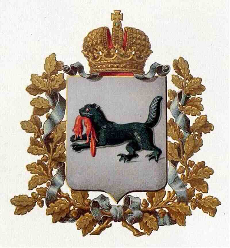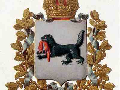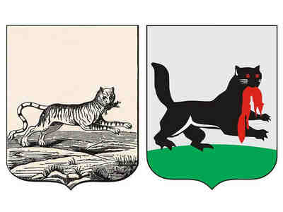 «В серебряном поле щита бегущий тигр, а в роту у него соболь. Сей герб старый».