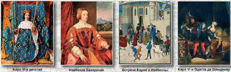 В молодости Карла VI описывали как человека энергичного, любящего удовольствия и развлечения; так, он был поклонником охоты и рыцарских поединков. В 1385 г. 17-летний Карл пожелал вступить в брак. В невесты ему выбрали Баварскую принцессу Изабеллу, союз с которой был дипломатически выгоден Франции. Через три года после женитьбы король решил взять правление на себя, однако вскоре начавшаяся болезнь сделала Карла VI лишь фактическим правителем. Реальная власть сосредоточилась в руках брата короля – герцога Орлеанского и жадной королевы Изабеллы, которая заботилась только об обогащении себя и собственных родственников. В последние годы жизни Карла VI за власть боролись группировки Людовика Орлеанского и Филиппа Бургундского, брата и дяди короля, развернувшиеся в противостояние арманьяков и бургиньонов.