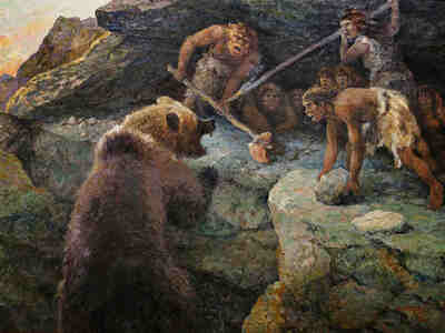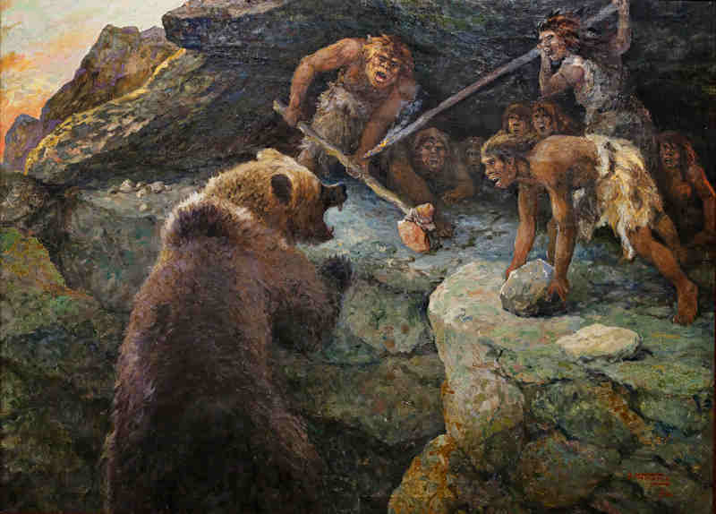 Неандертальцы убивали пещерных медведей на протяжении многих тысяч лет. В древних пещерах, хранящих следы этих загадочных людей, находят сотни медвежьих черепов. У неандертальцев не было автоматического оружия, но они как-то умудрялись охотиться на страшного зверя.