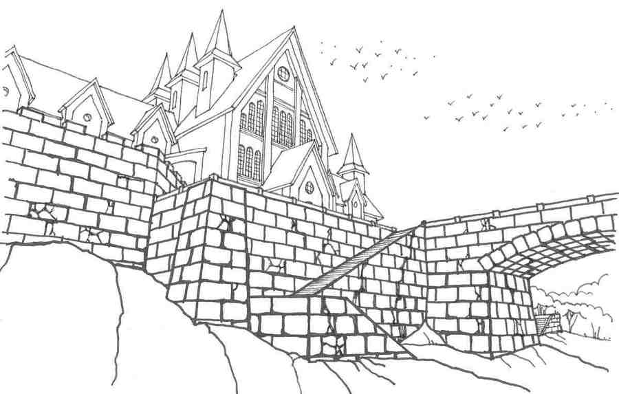 Подойдя к мосту, Вы замечаете лестницу, ведущую наверх к темному замку.