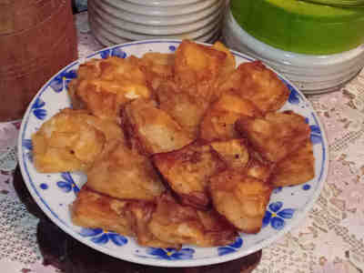 - Каждую пластинку обмакнуть в муку и обжаривать с двух сторон, как кабачки.